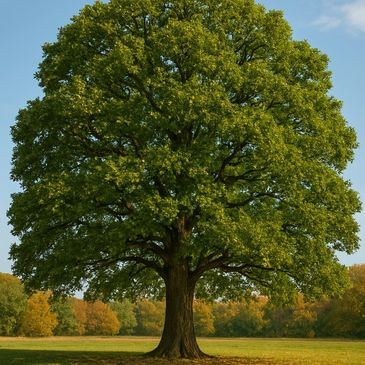 The oak tree symbolizes protection due to its massive size, deep roots, endurance, and steadfastness against hardship and